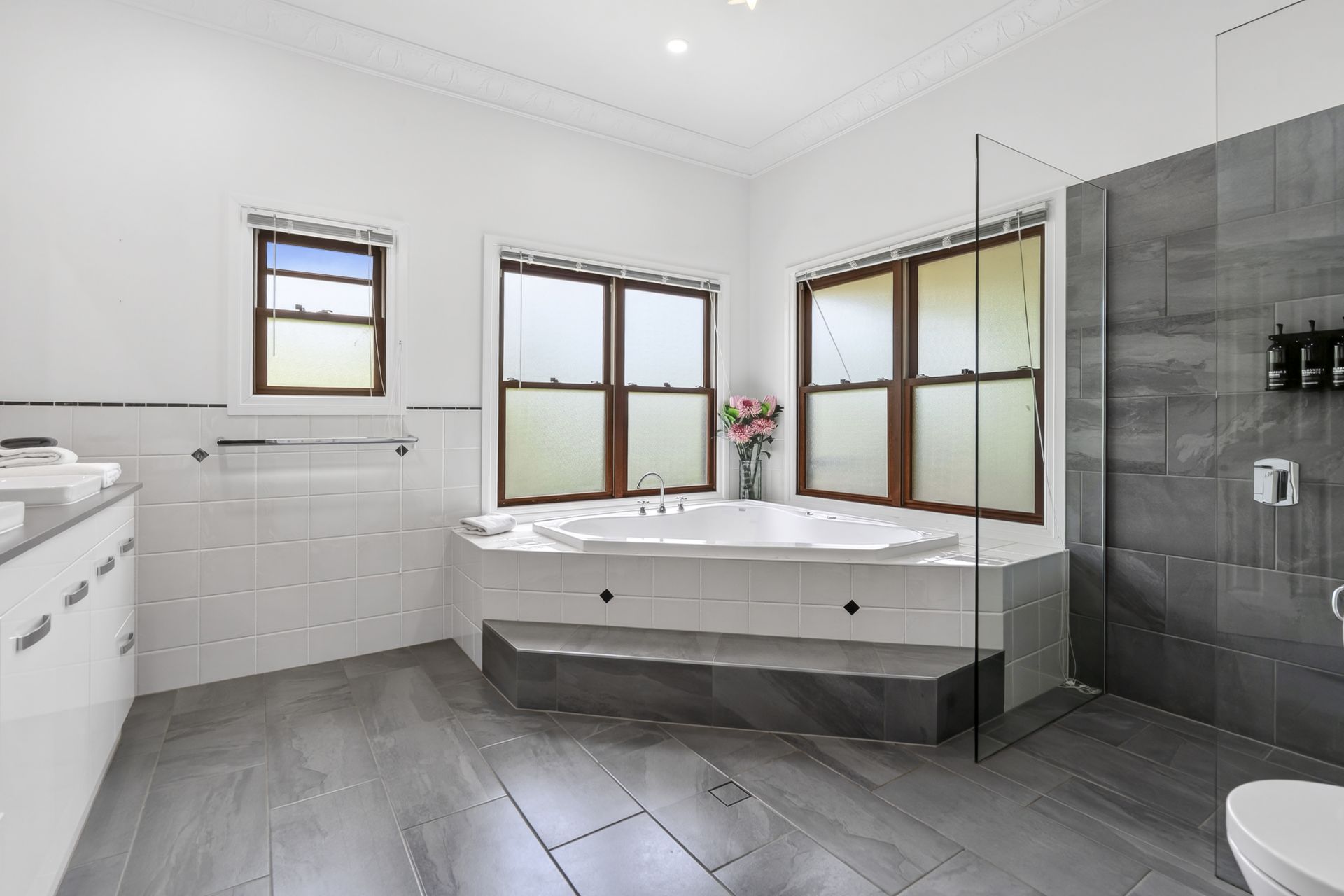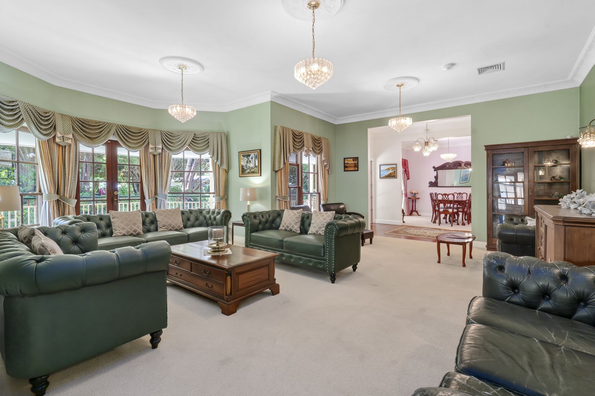 The private master suite is a sanctuary of its own, complete with a spacious ensuite and adjoining sitting room, offering a peaceful retreat with elevated outlooks. Throughout the home, bespoke finishes, stone benchtops, a statement gas fireplace and custom French doors and windows reflect uncompromising quality and craftsmanship.