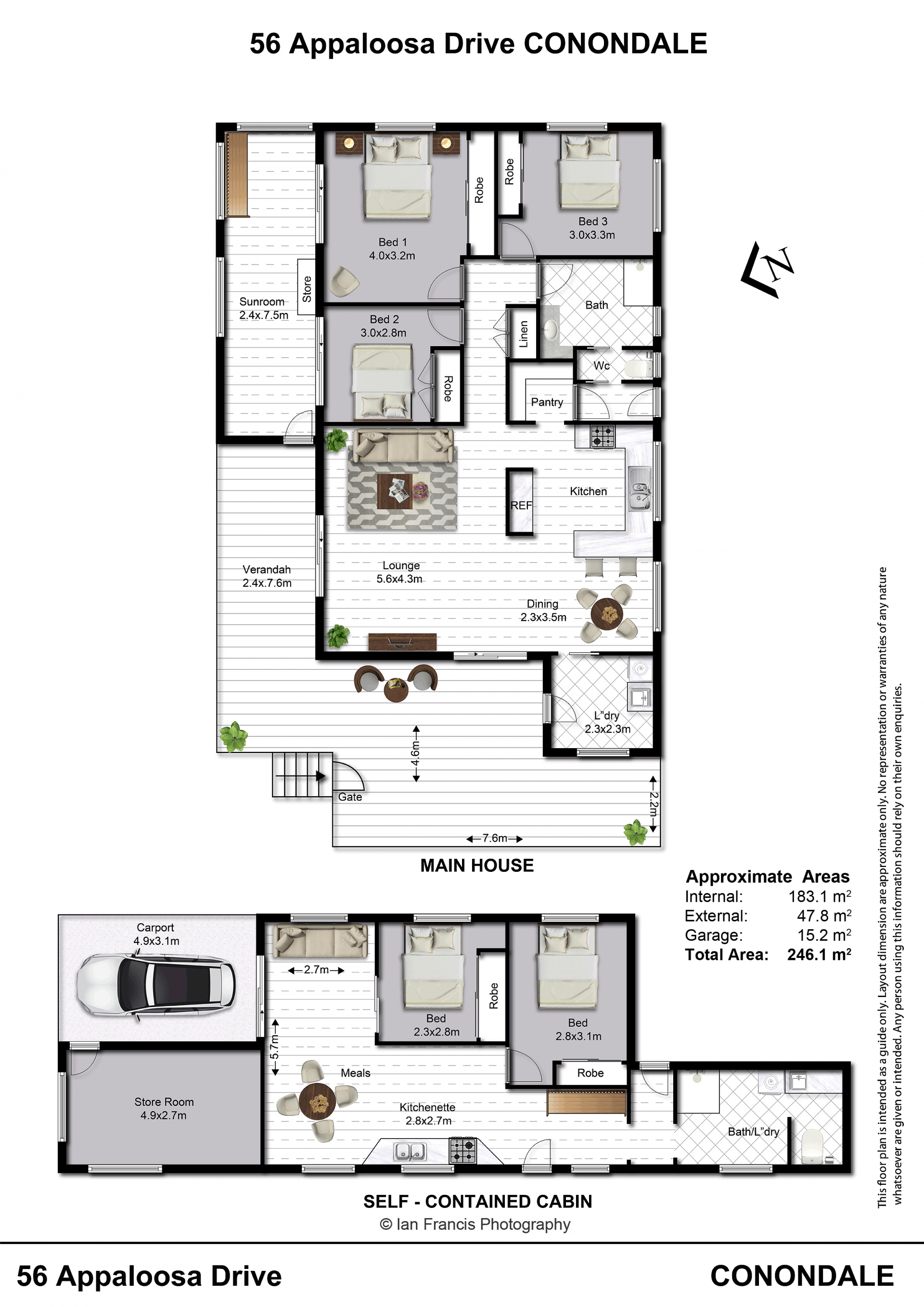 - Single carport off the granny flat plus a large storage room/workshop area