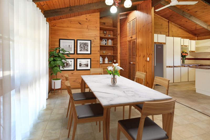 - Huge, North facing lounge room with cosy fireplace, exposed beams and brick feature wall, perfect for entertaining family and friends