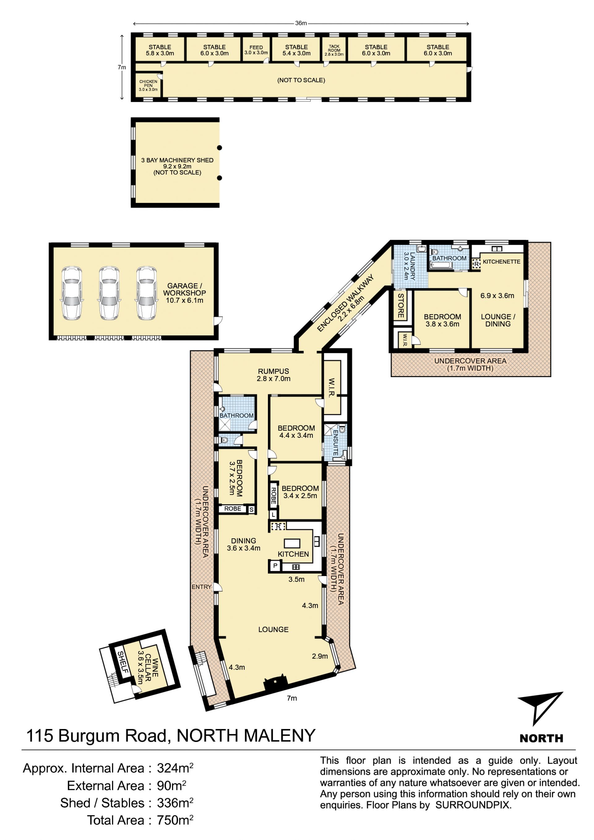 - Stable complex has huge 33 x 4m undercover area for storage or veterinary use