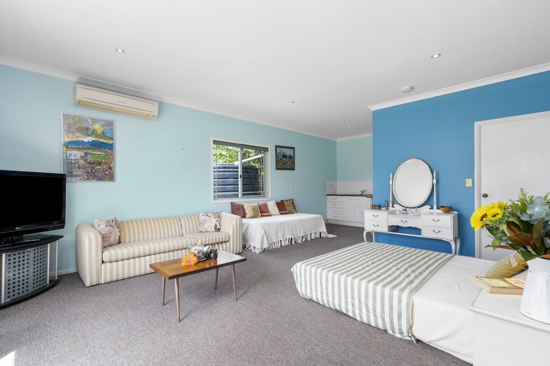 - Separate, air-conditioned granny flat includes a large studio with open plan living, bedroom, kitchenette and private bathroom, perfect for guests or an additional income stream