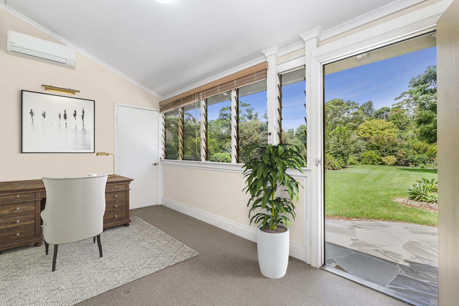 - Large office with external access overlooking the grassy lawned back yard