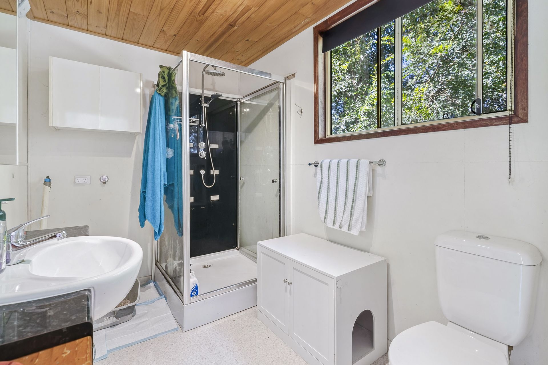 - Family bathroom enjoys views over the rainforest, large vanity and shower over bath, plus plenty of storage
