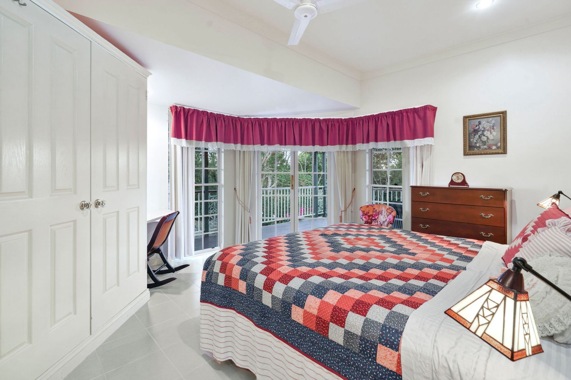 - King size master bedroom, fan with ornate cornice, built in robe, North facing with lovely views of the garden