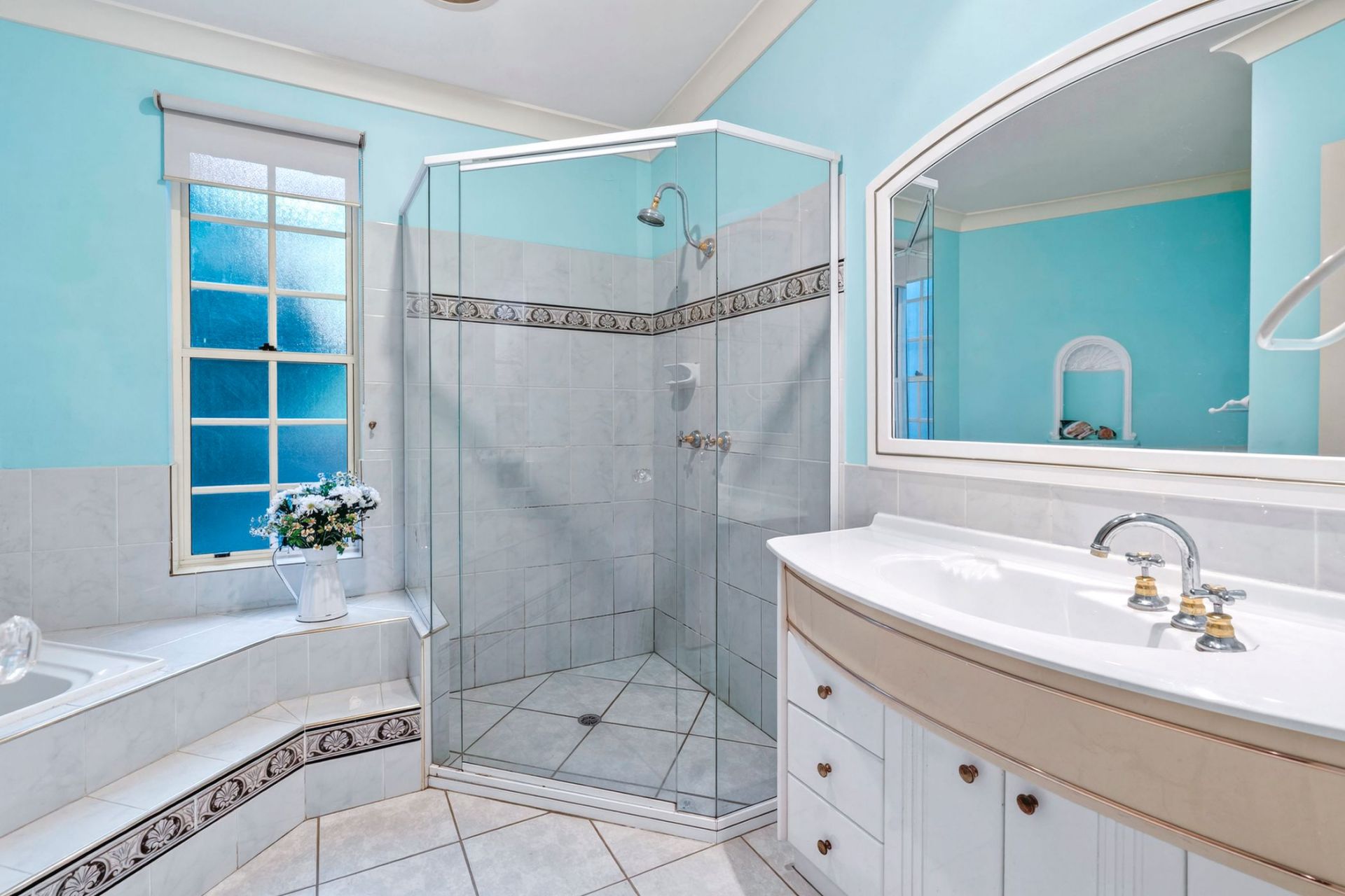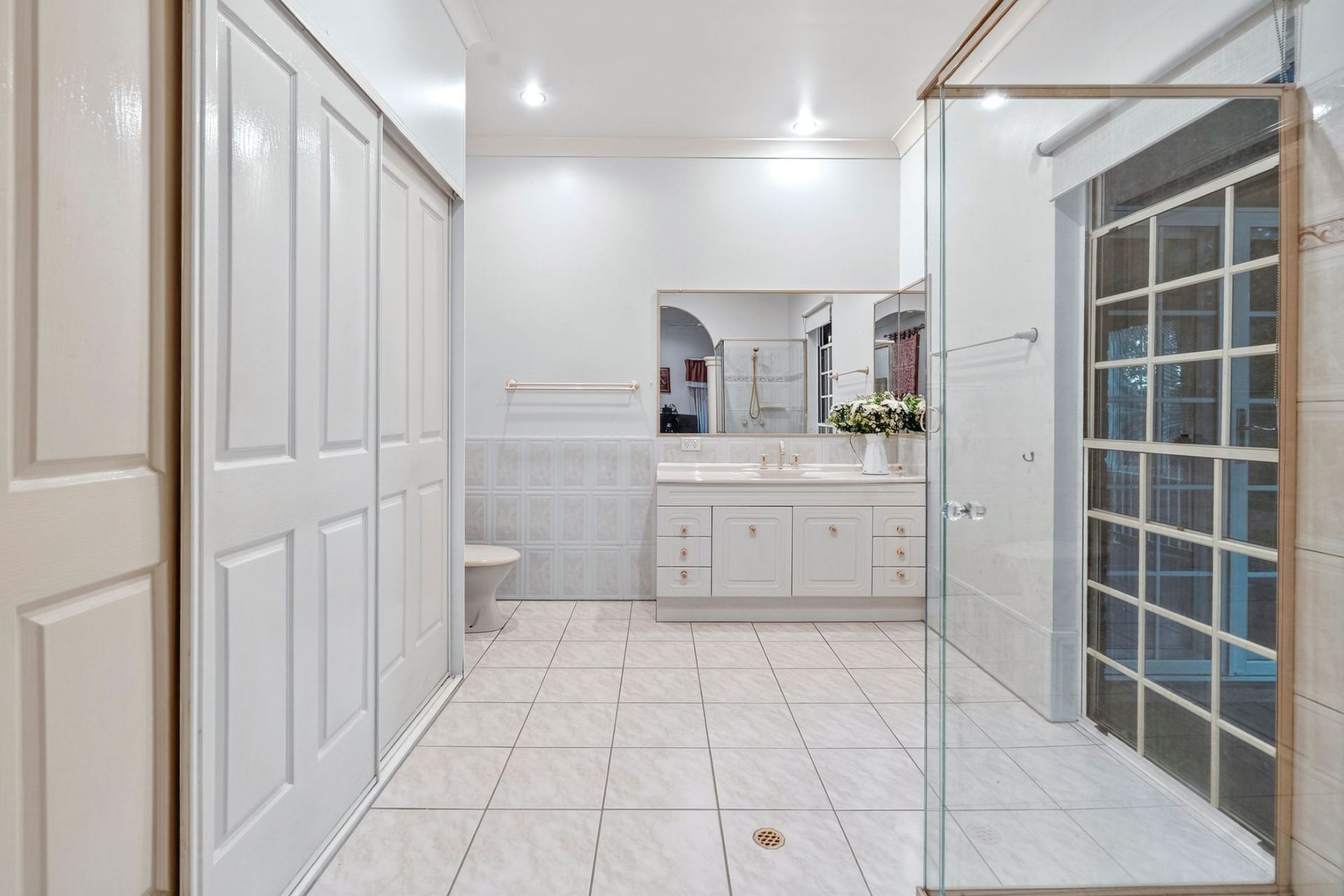 - Ensuite is huge with a decorative column entry from master suite, full wall of built in robes, shower and vanity