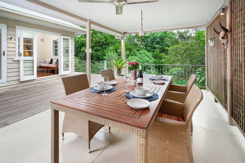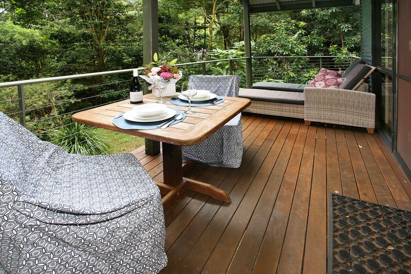 Covered verandah amongst the tree tops, perfect for lunch, pre dinner drinks or just to escape the hustle and bustle