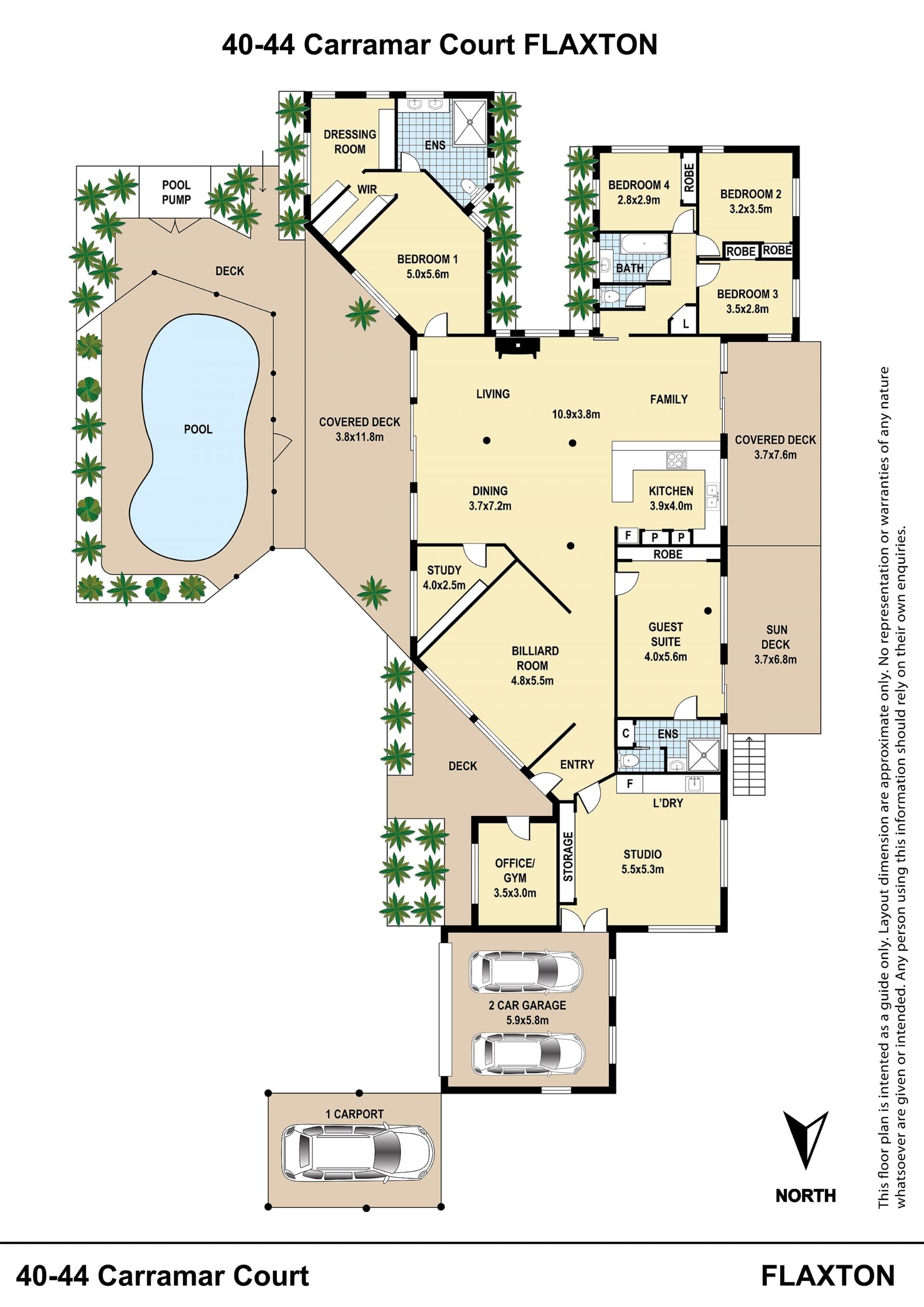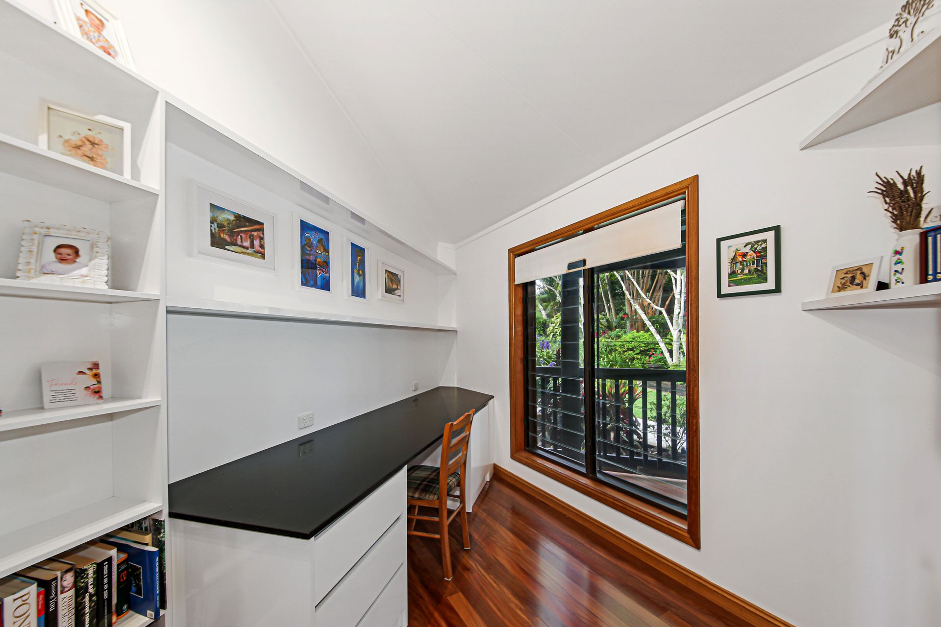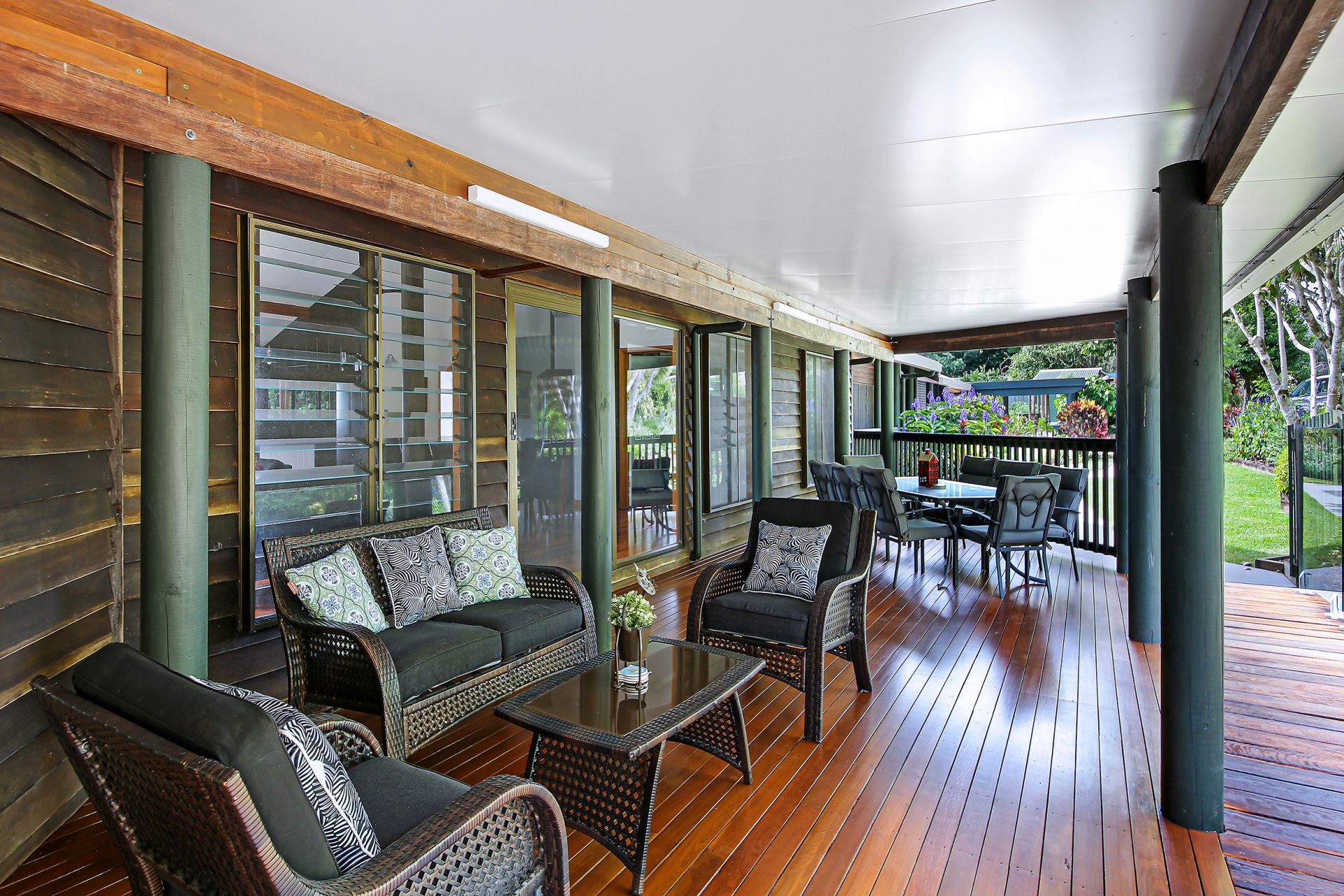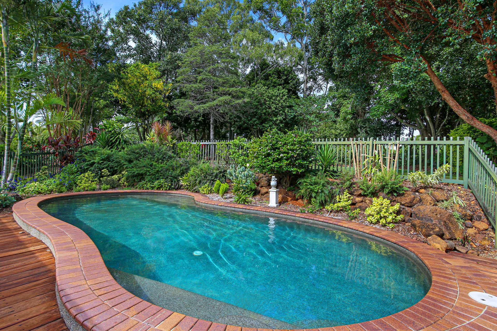 - Northeast facing, covered front deck overlooking the in ground, pebble crete saltwater pool surrounded by landscaped gardens, just the place to sit and relax while watching the children play in the pool
