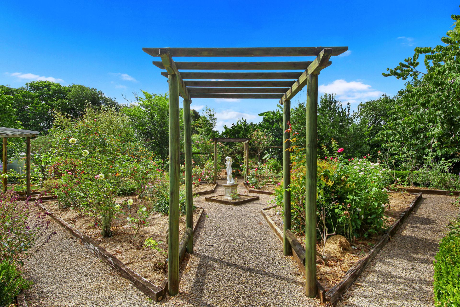 - Gorgeous rose garden with feature statues and entrance pergolas