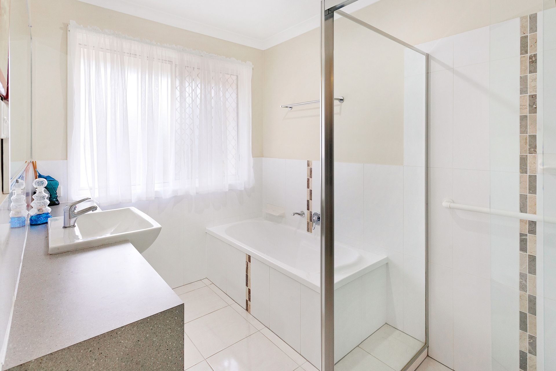 Security in place, tinted windows, new installed external awnings off the master bedroom and kitchen, new paint inside, except for office and garage