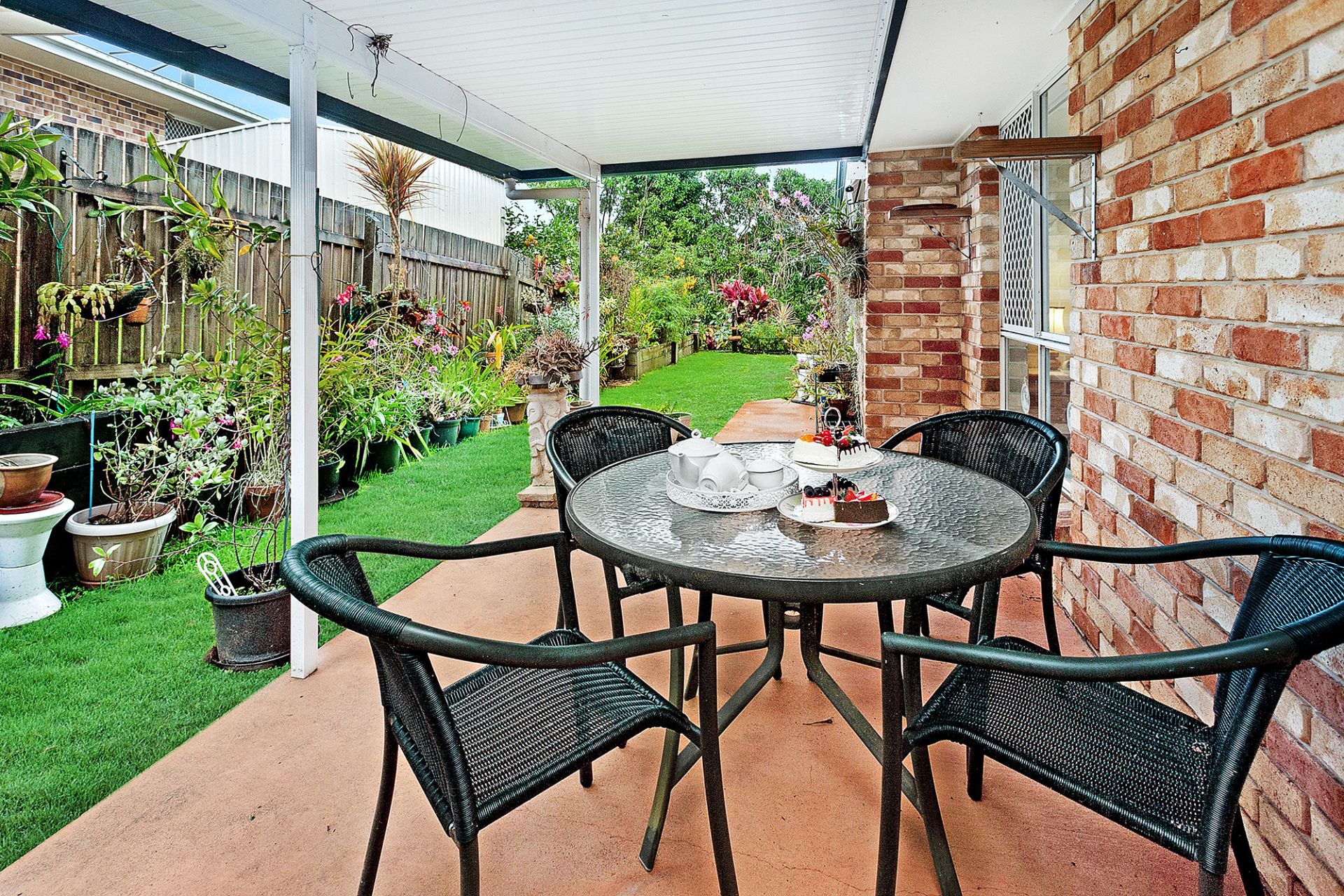 Covered North facing porch, perfect for a sunny, lazy brunch