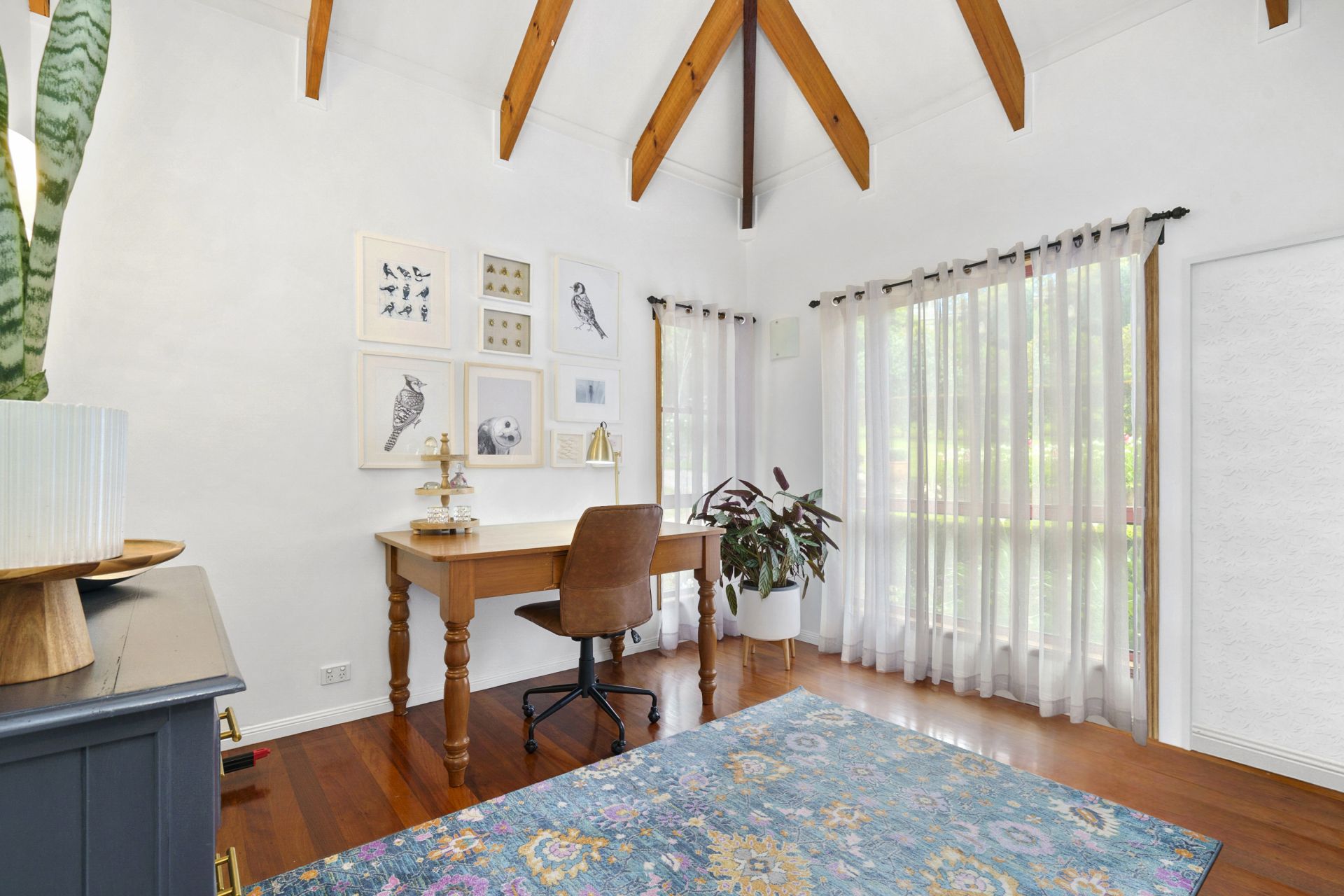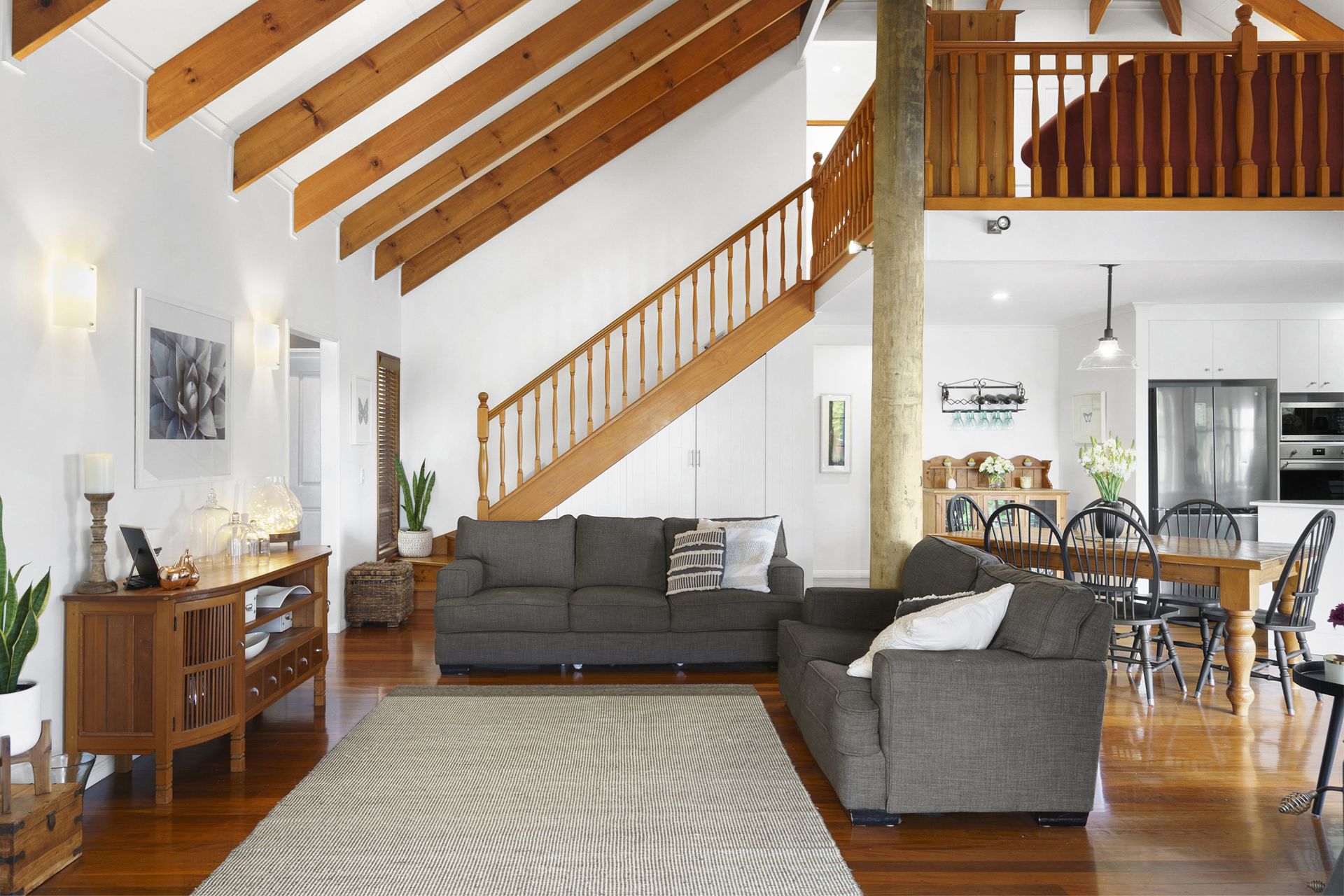 - Soaring apex ceilings with exposed timber beams and posts plus polished timber floors are all stunning features of this home