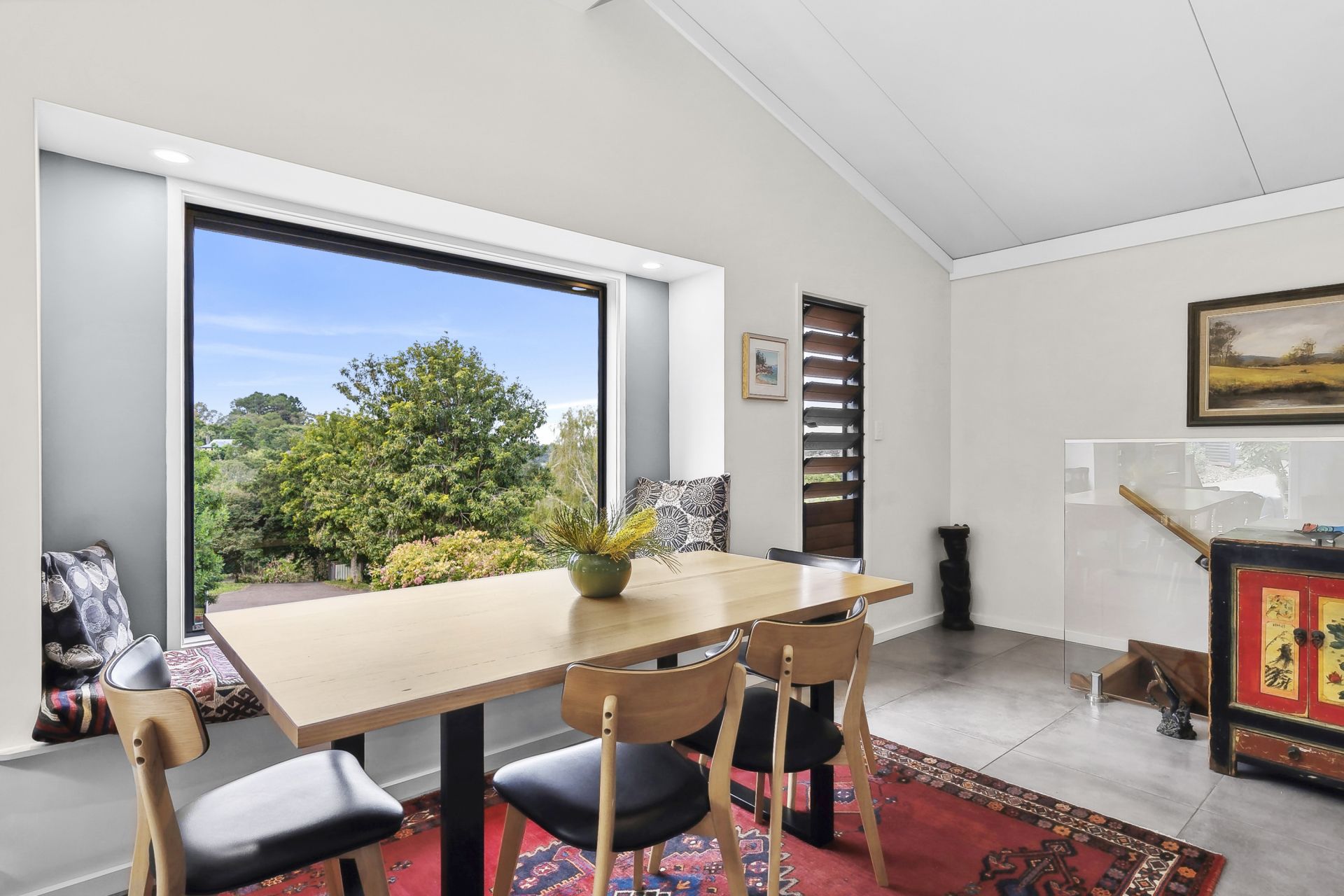 - The East facing window seat framed by a huge picture window, creates a perfect spot to curl up with your morning coffee and enjoy the picturesque views