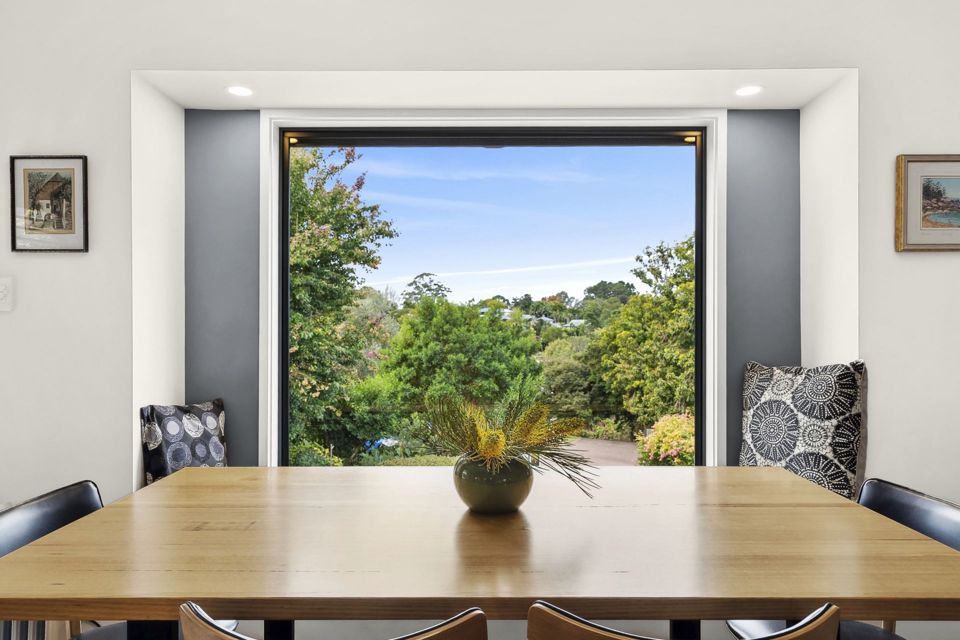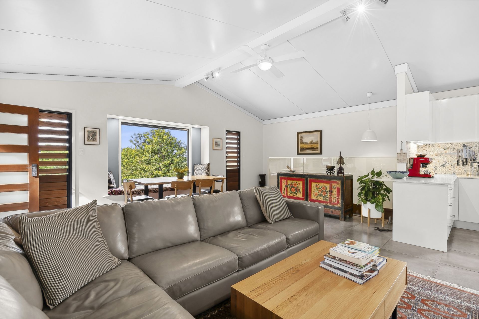 - The spacious open-plan layout enhances the sense of space and light, complemented by elegant pendant lights, large windows and sliding glass doors that flood the interior with natural light