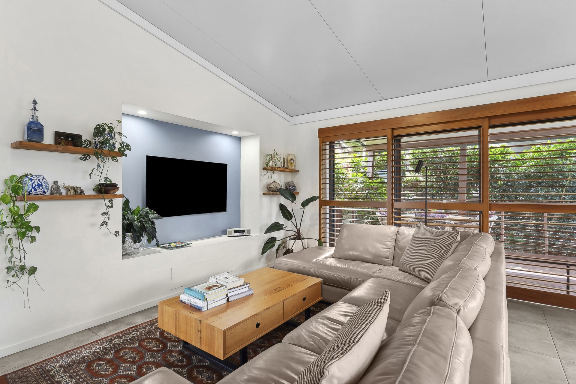 - Cleverly designed and built with low maintenance materials including cedar plantation shutters, 600mm tiles in the living areas, insulated panels in the raked ceilings and exterior walls ensures comfort all year round