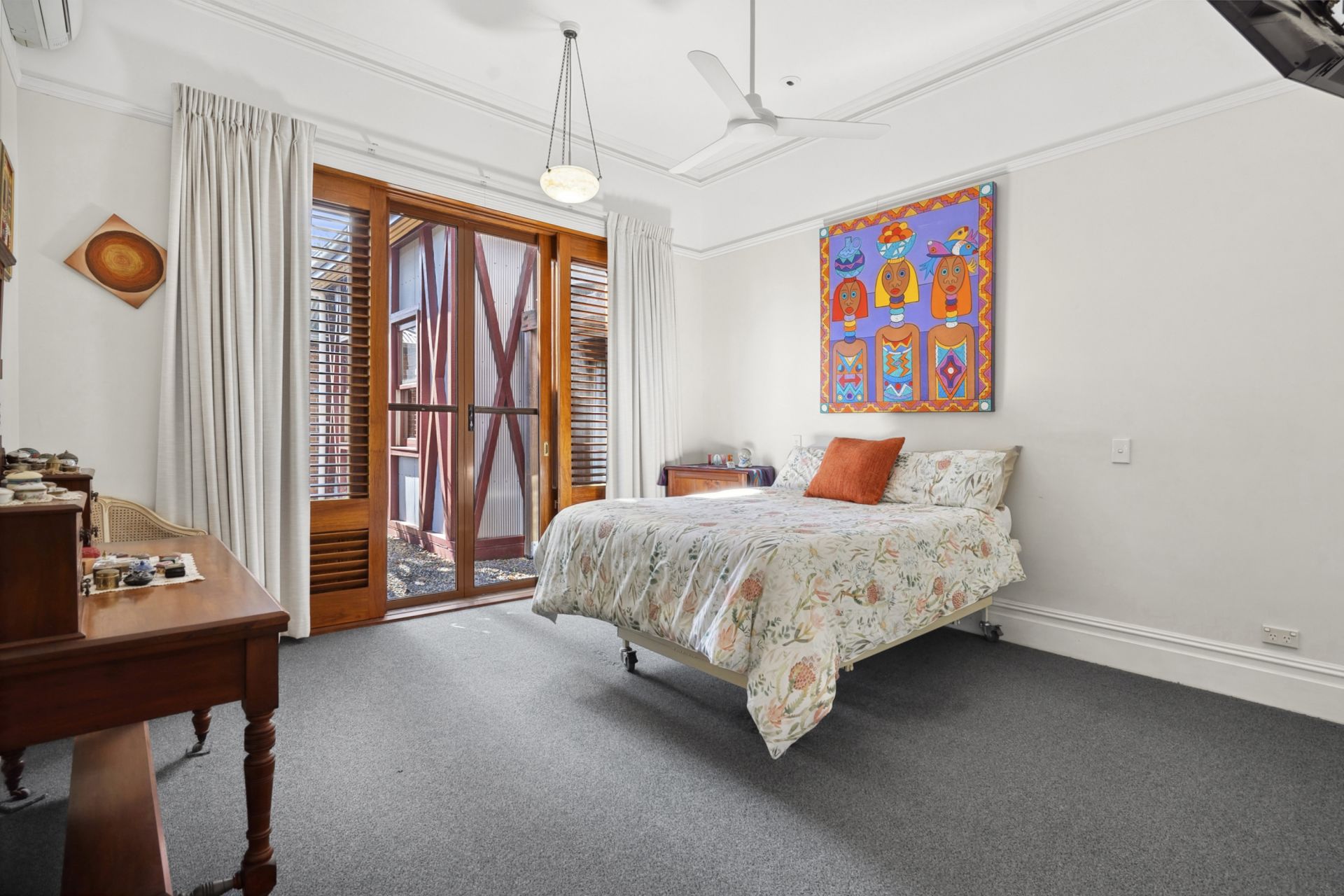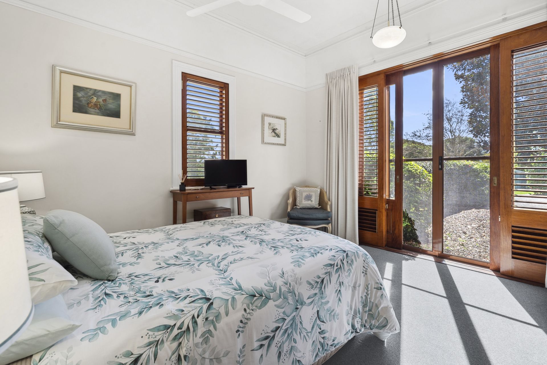 - Two generous guest bedrooms both with a Northerly aspect, high ceilings, fans,