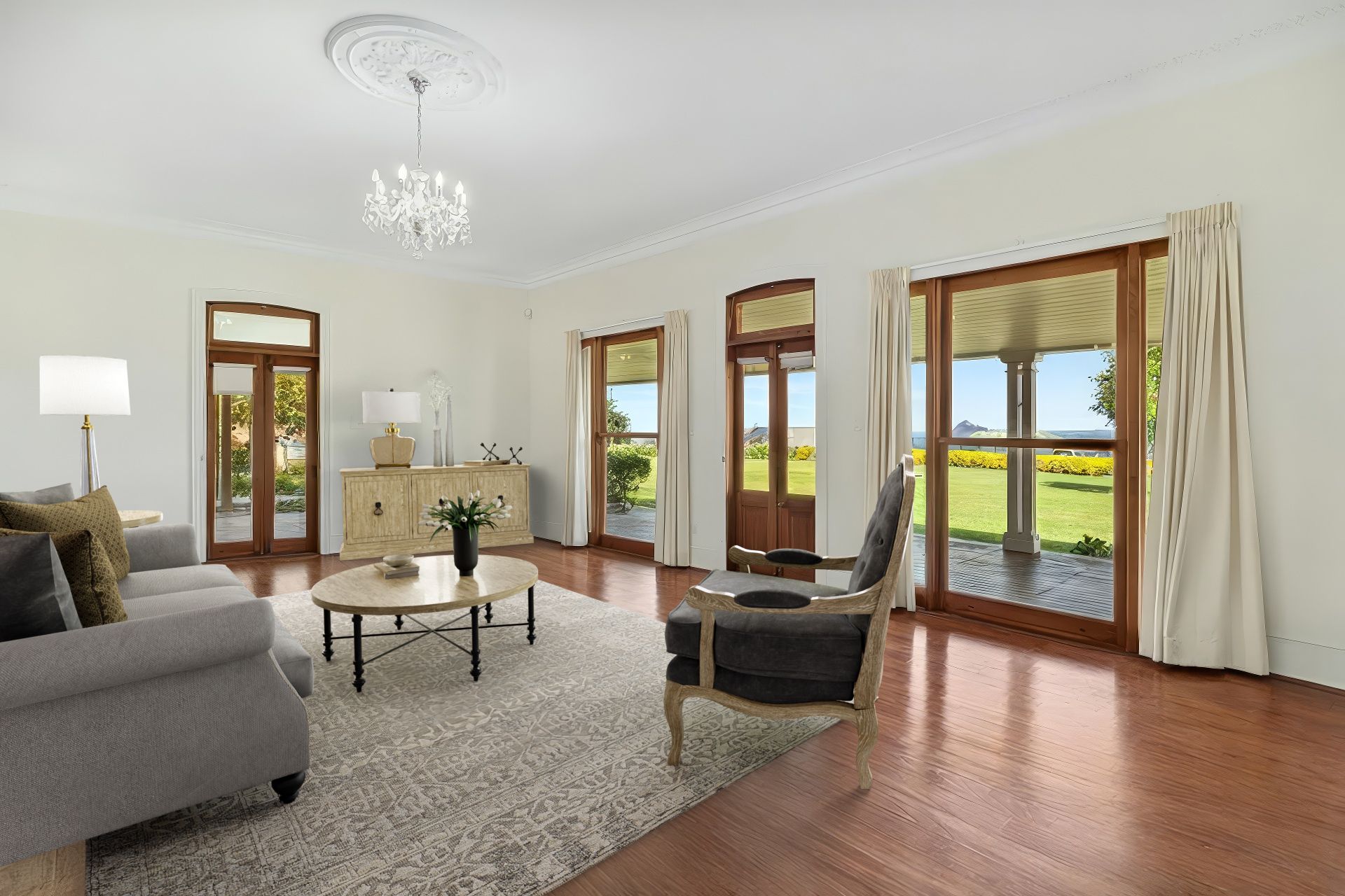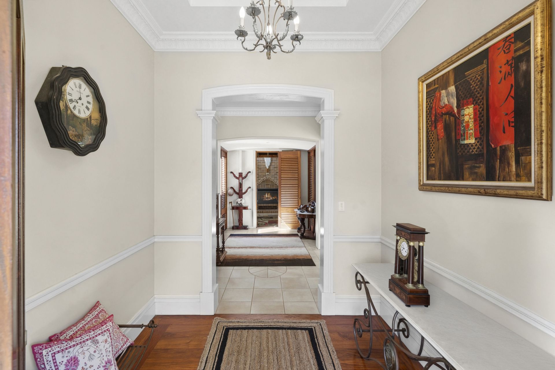 - The entry foyer sets the expectation of the quality throughout the home with ornate double cornice, stunning ceiling rose and chandelier suspended from a soaring ceiling completing this generous foyer
