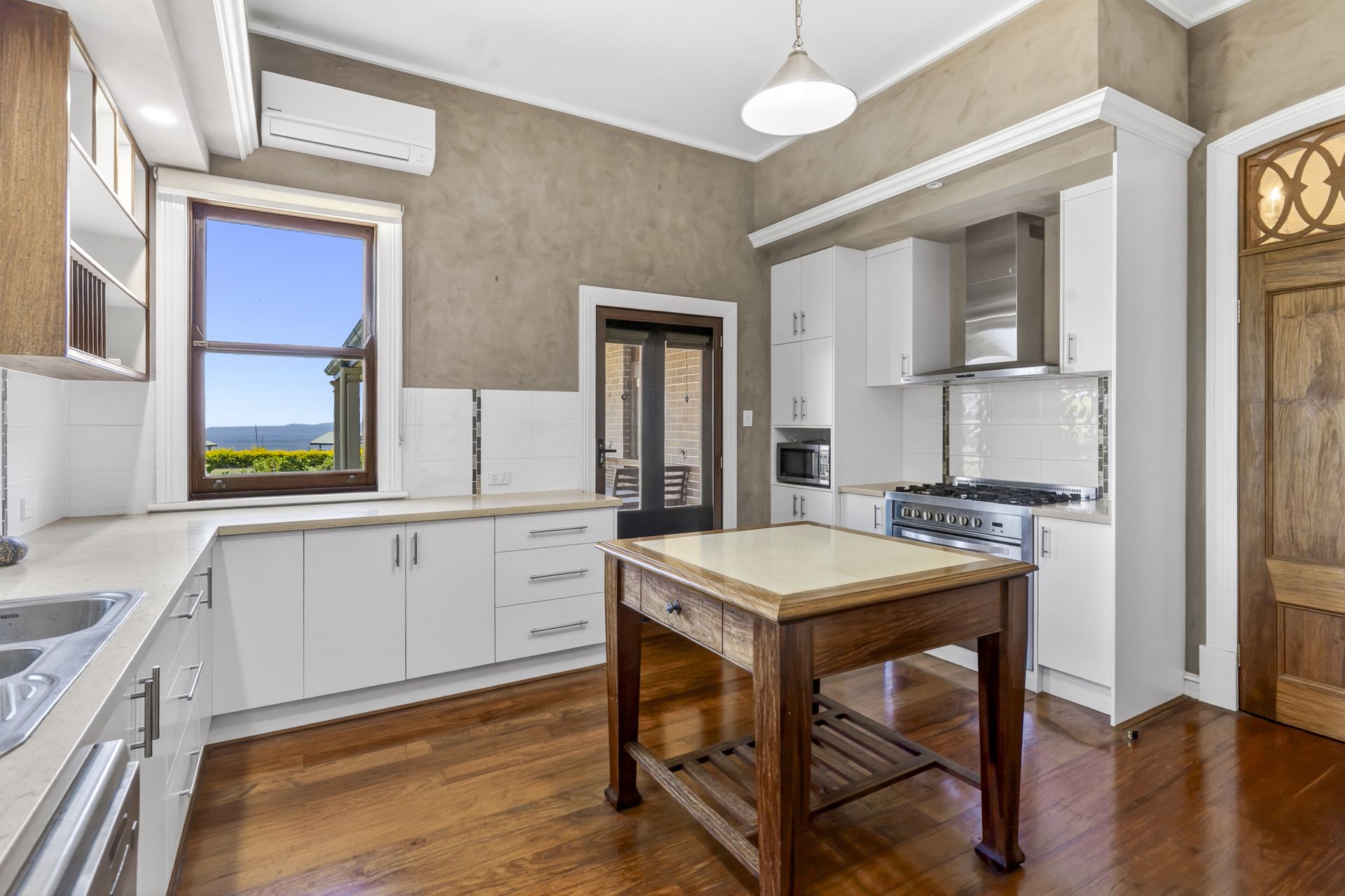 - Contemporary kitchen with generous bench space, quality appliances, split-system air conditioning and stunning outlooks