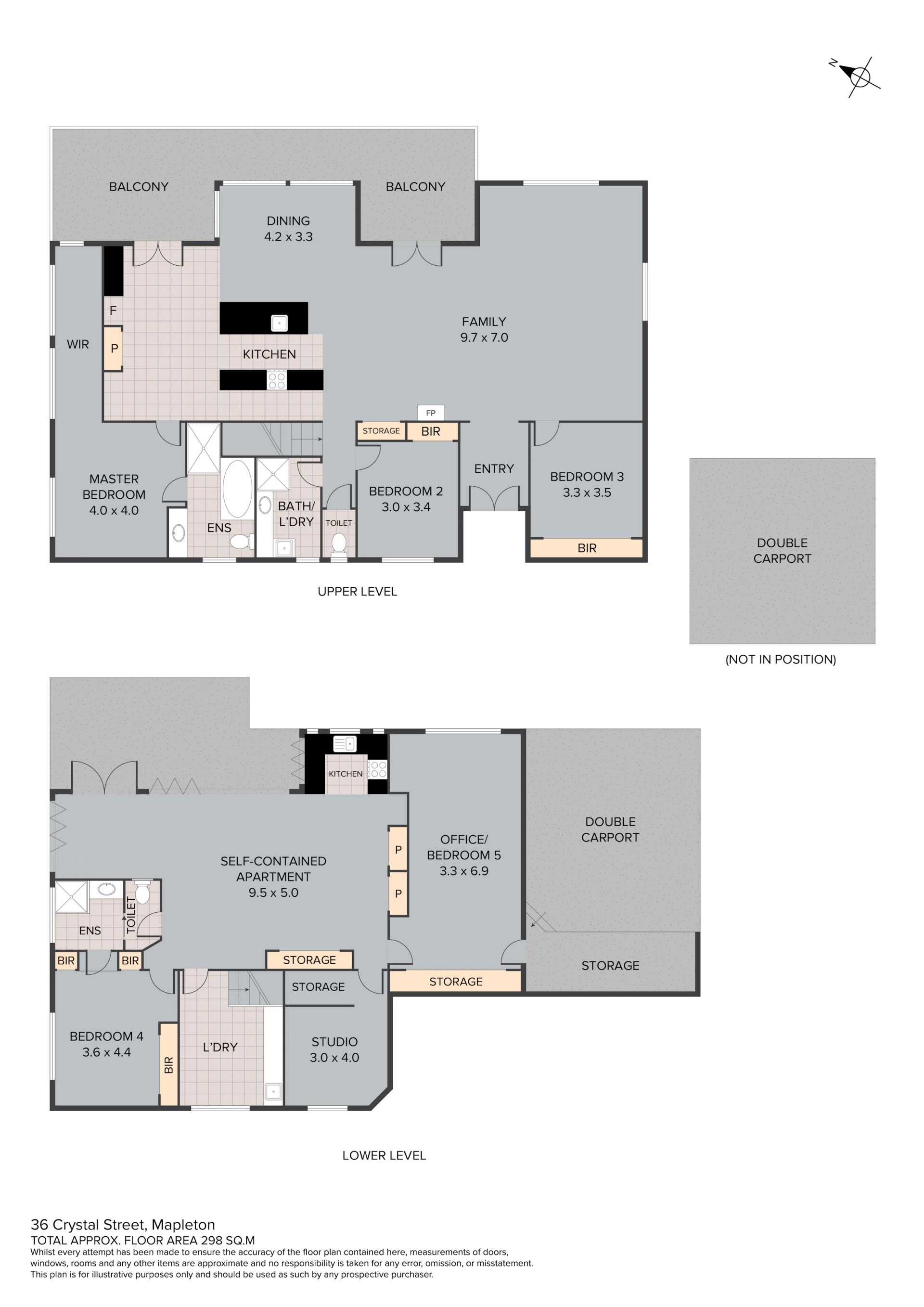 - Internal timber stairs and separate side access to the fully self-contained two-bedroom apartment with plush carpet, reverse cycle air-conditioning, two-way bathroom with shower and separate toilet